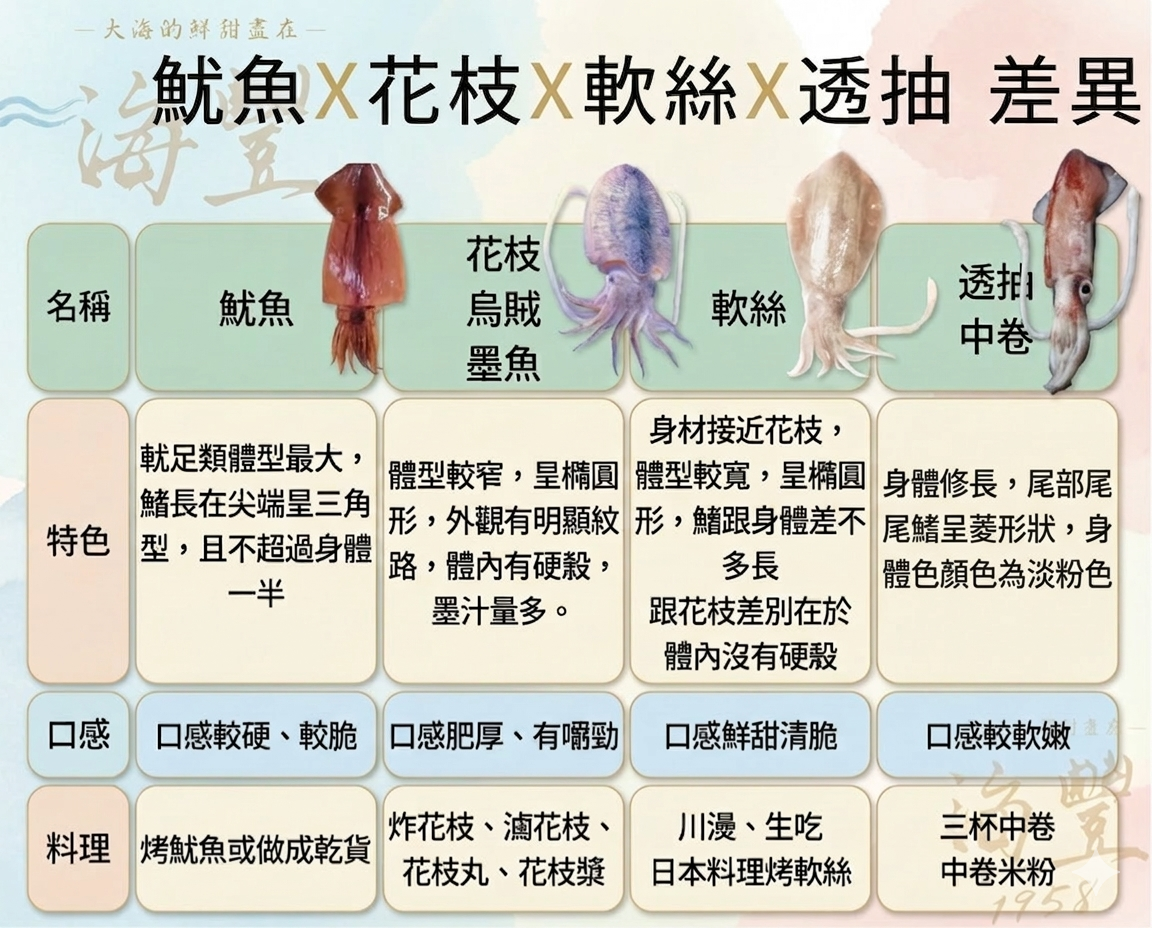 花枝、軟絲、透抽如何分辨,海豐海產