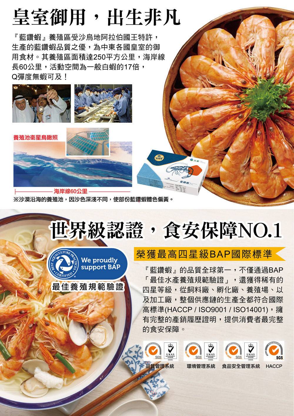 🌟紅海海域,高溫少雨全的氣候,造就了世界鹽度最高且無污染的海域,確保了藍鑽蝦的環境純淨度及養殖條件。